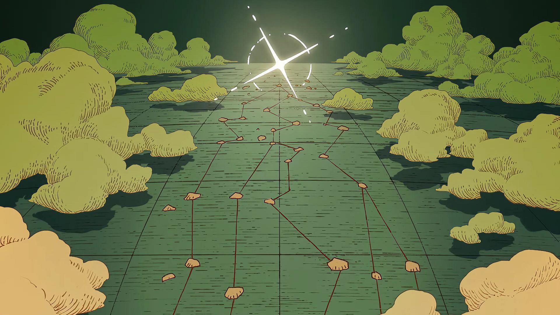 The focus then returns to the Straw Hats, who are shown from above. The camera ascends continuously, up until framing the entire Egghead Island, from which the scene transitions into the various routes originating from the Red Line.