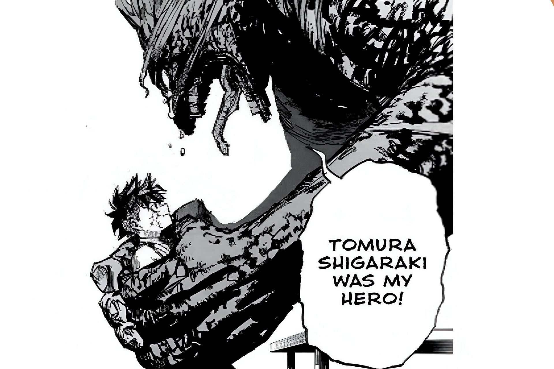 In chapter 418, after Deku entered Tomura Shigaraki's origins, the villain got back to his senses for a moment and realized that he indeed needed to become a hero but for the villains. That was because they were his friends, the people who gave Tomura a place in their hearts, something others couldn't do.