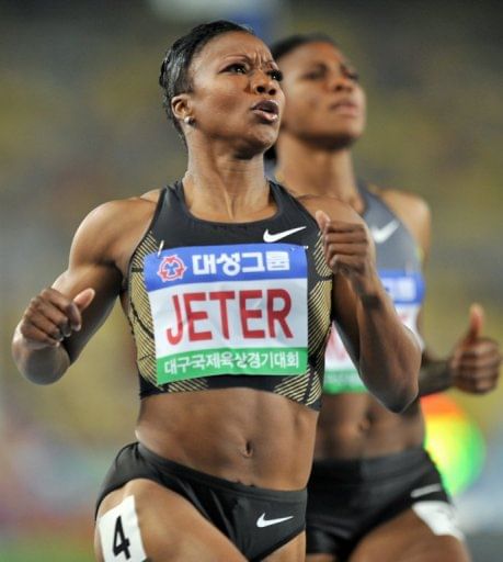 Carmelita Jeter of the US during the women’s 100m event at the Daegu Championships Meeting on May 16. Jeter is among 40 world or Olympic champions competing in the Diamond League meet at Icahn Stadium in New York.