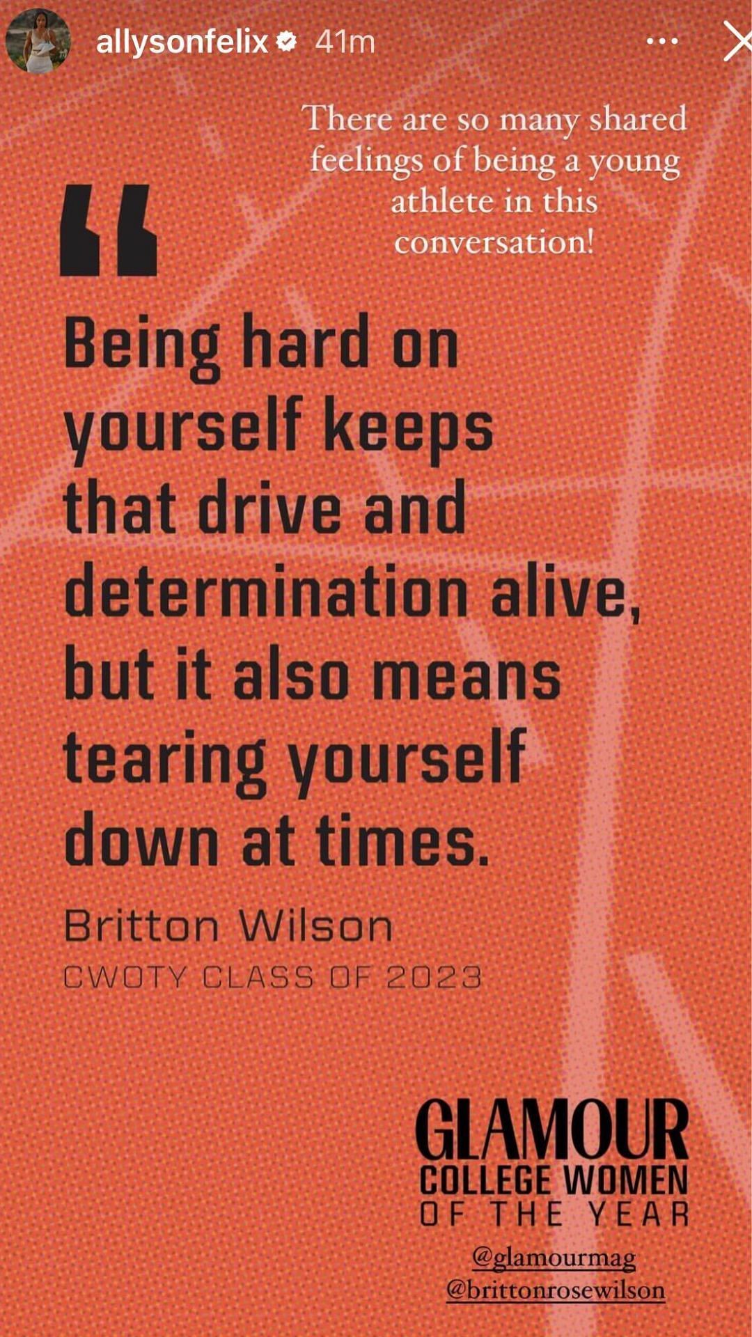 Legendary track and field athlete, Allyson Felix, was extremely impressed after she interacted with 22-year-old athlete Britton Wilson on September 26. The young athlete recently made it to the list of six student-athletes who were named the 2023 Glamour College Women of the Year.
