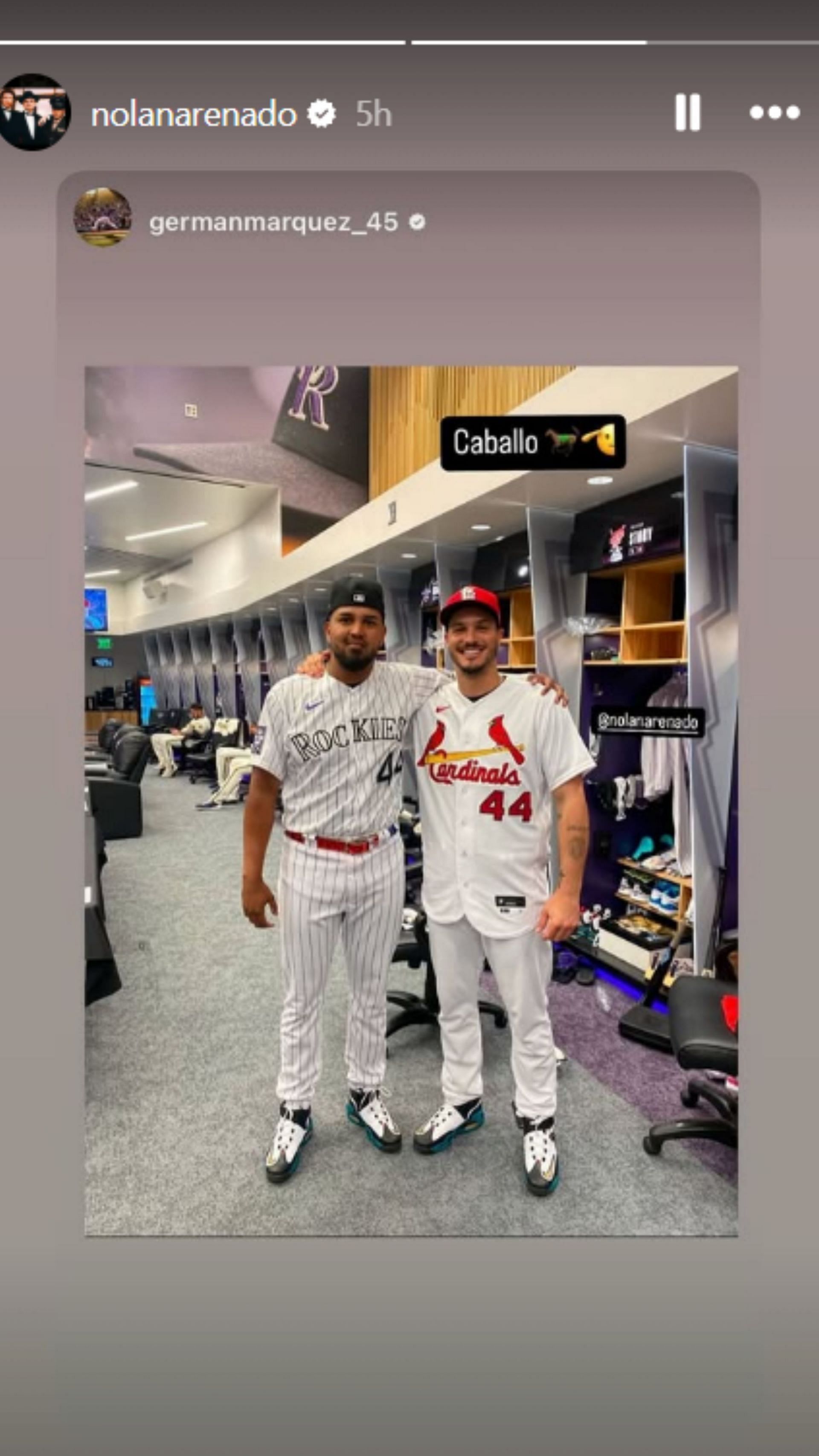 Yesterday, Arenado re-shared the snap via his Instagram stories. The two former teammates stood putting one shoulder over the other, in their respective team jerseys.