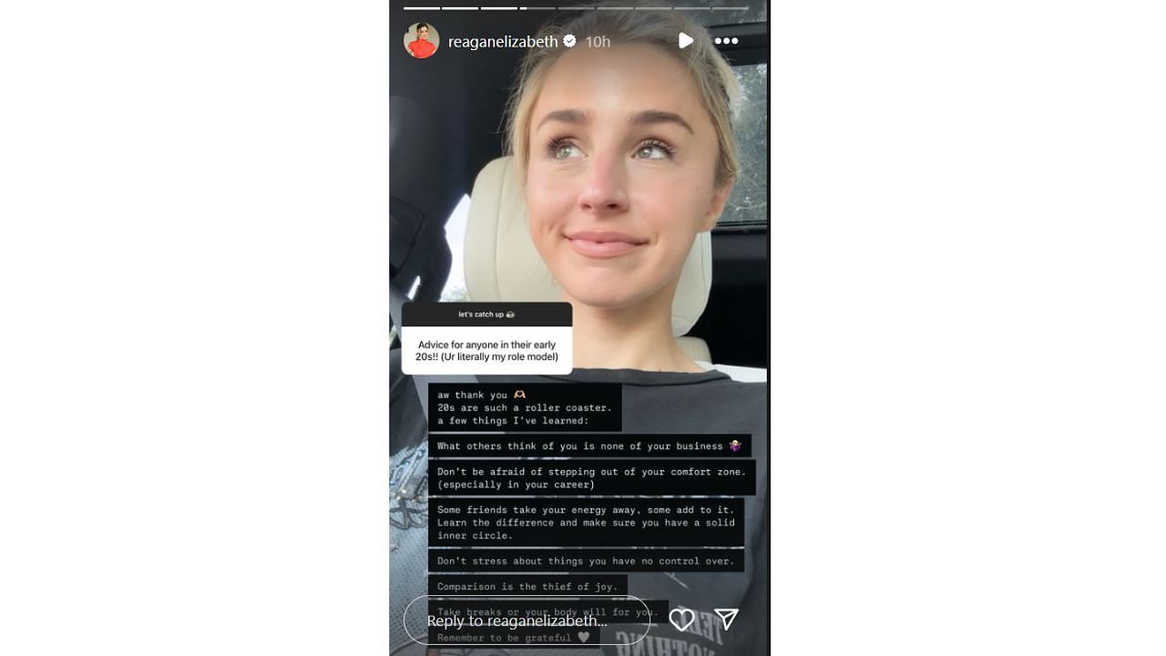 On Wednesday, Reagan engaged in a Q&A session with her followers on social media. One user who considers Reagan a role model asked Reagan for advice for those who are in their early 20s. Talking from experience, Reagan had a few pointers: