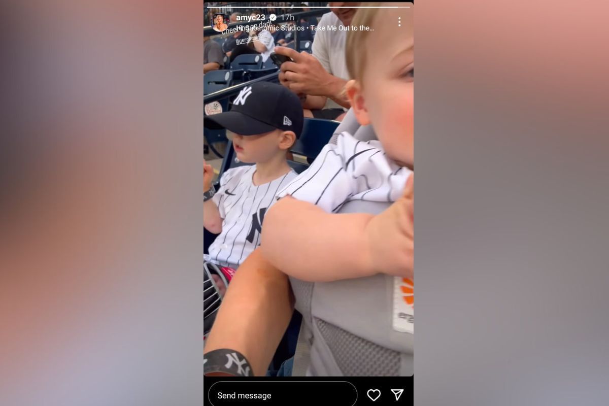 Amy took to her Instagram story and posted some pictures of their outing, including some adorable snaps of her kids, cheering for their father. Both Caden and Everett were dressed in Yankees outfits.