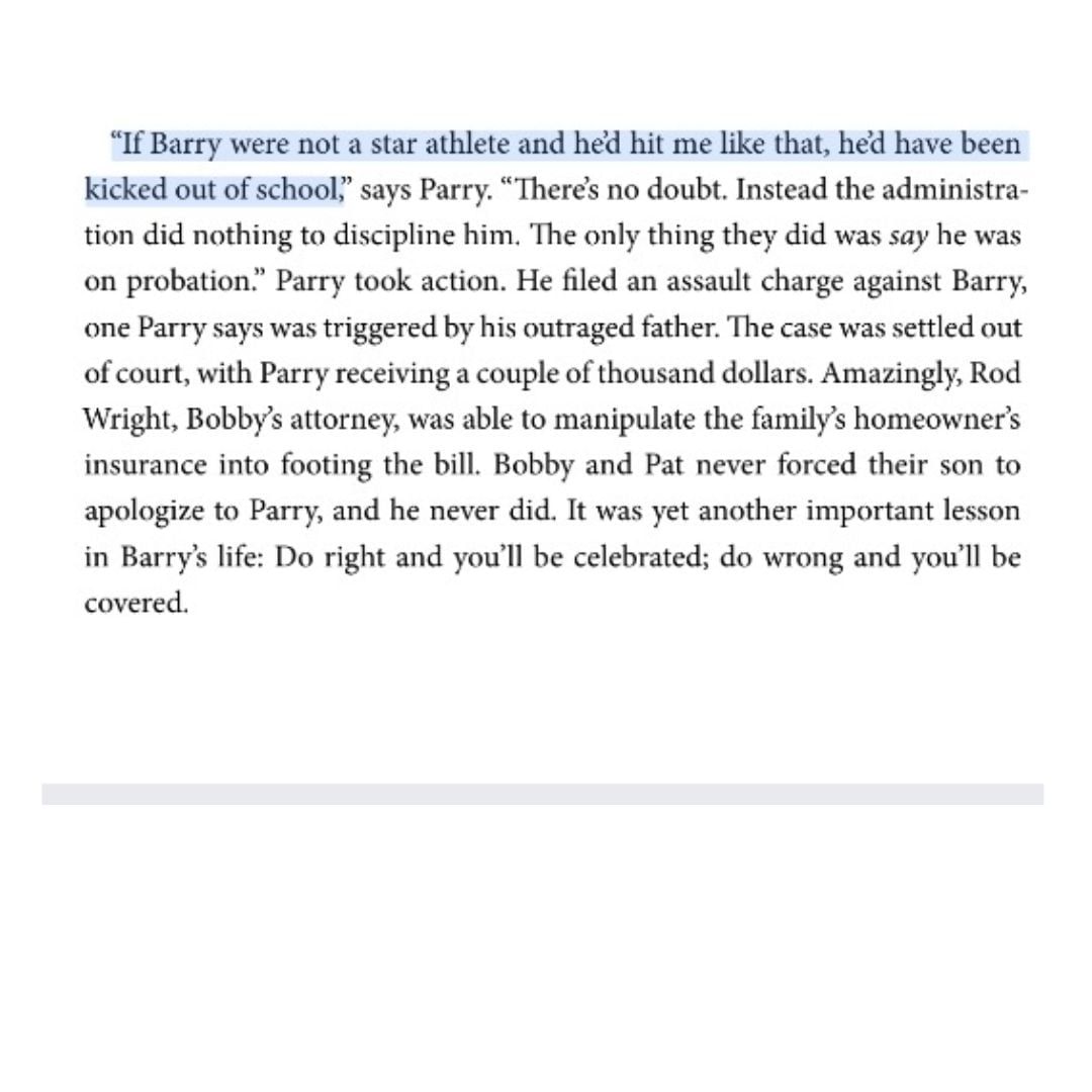 “If Barry were not a star athlete and he’d hit me like that, he’d have been kicked out of school," Parry mentioned in “Love Me, Hate Me: Barry Bonds and the Making of an Antihero."