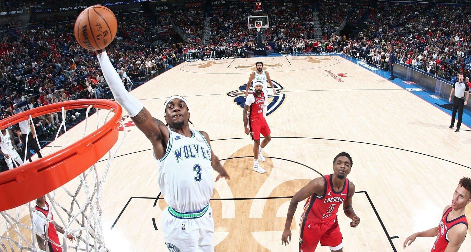 A. McDaniels wears jersey No. 3 for the Timberwolves.