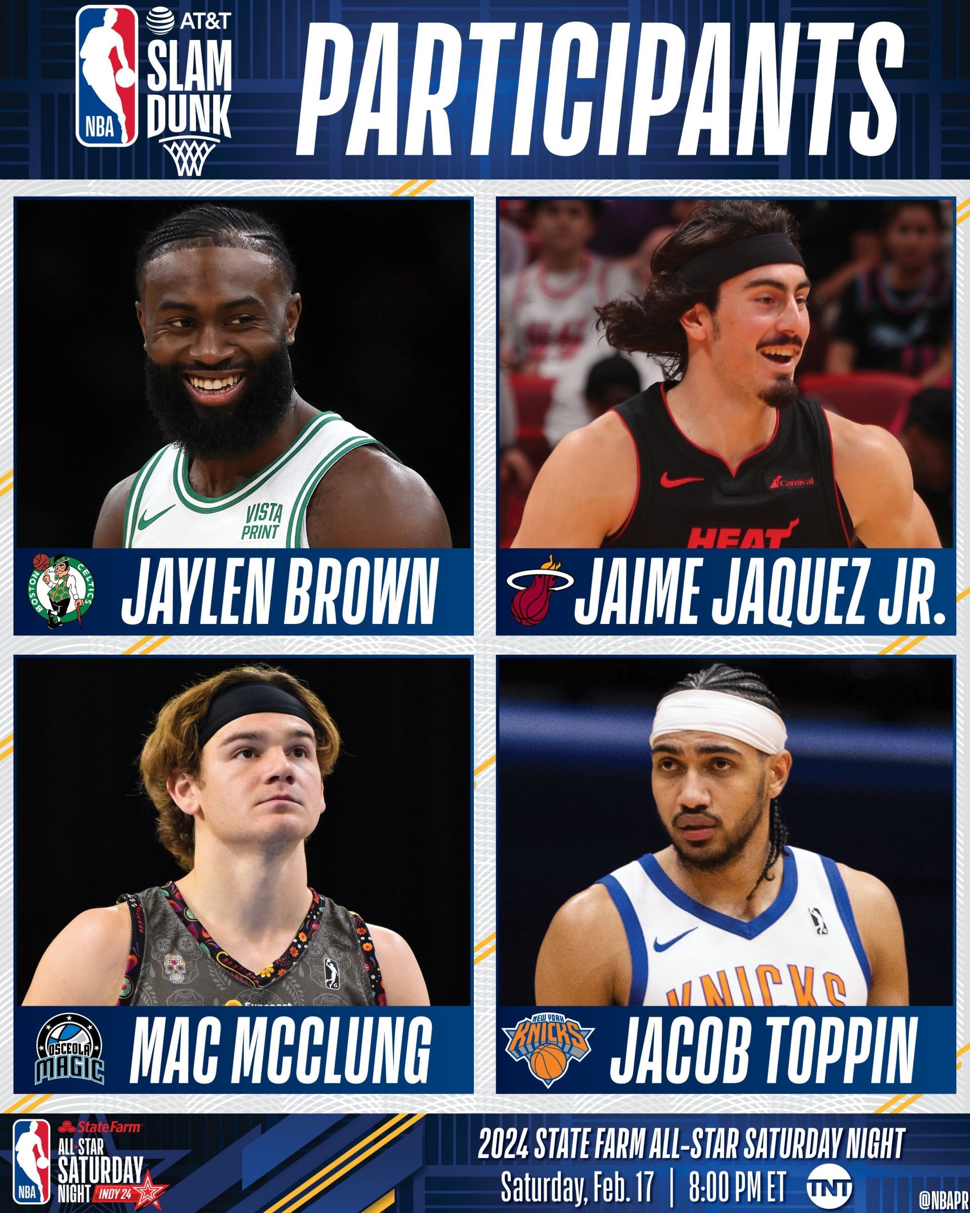 The 2024 NBA All-Star Dunk Contest, presented by AT&T, was played on Saturday, February 17 at the Lucas Oil Stadium, Indianapolis.