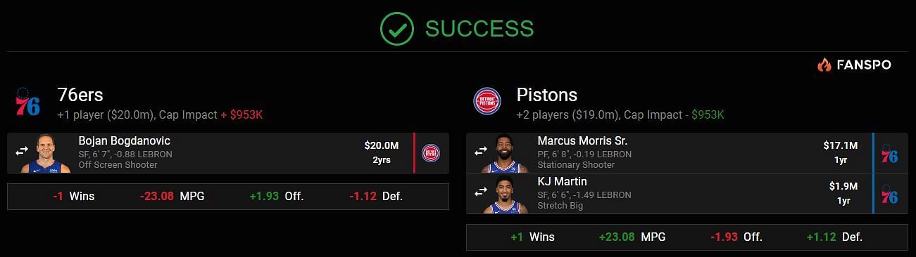 He could spread the floor and would add another layer to the offense. The Philadelphia 76ers could offer the Pistons a package consisting of Marcus Morris Sr., KJ Martin and a first-round pick.