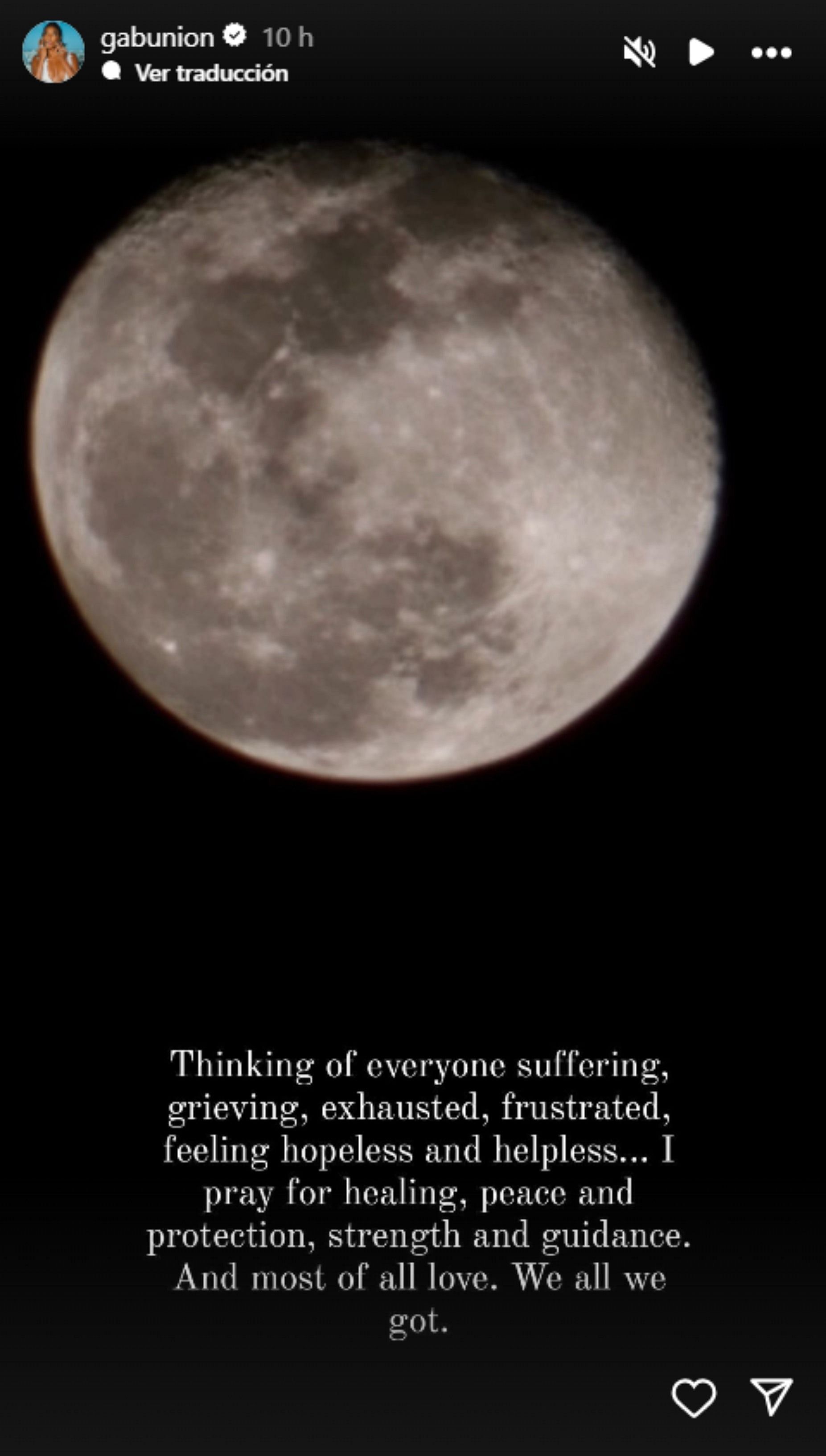 Alongside a picture of a full moon, Union wrote a message for those facing difficult times.