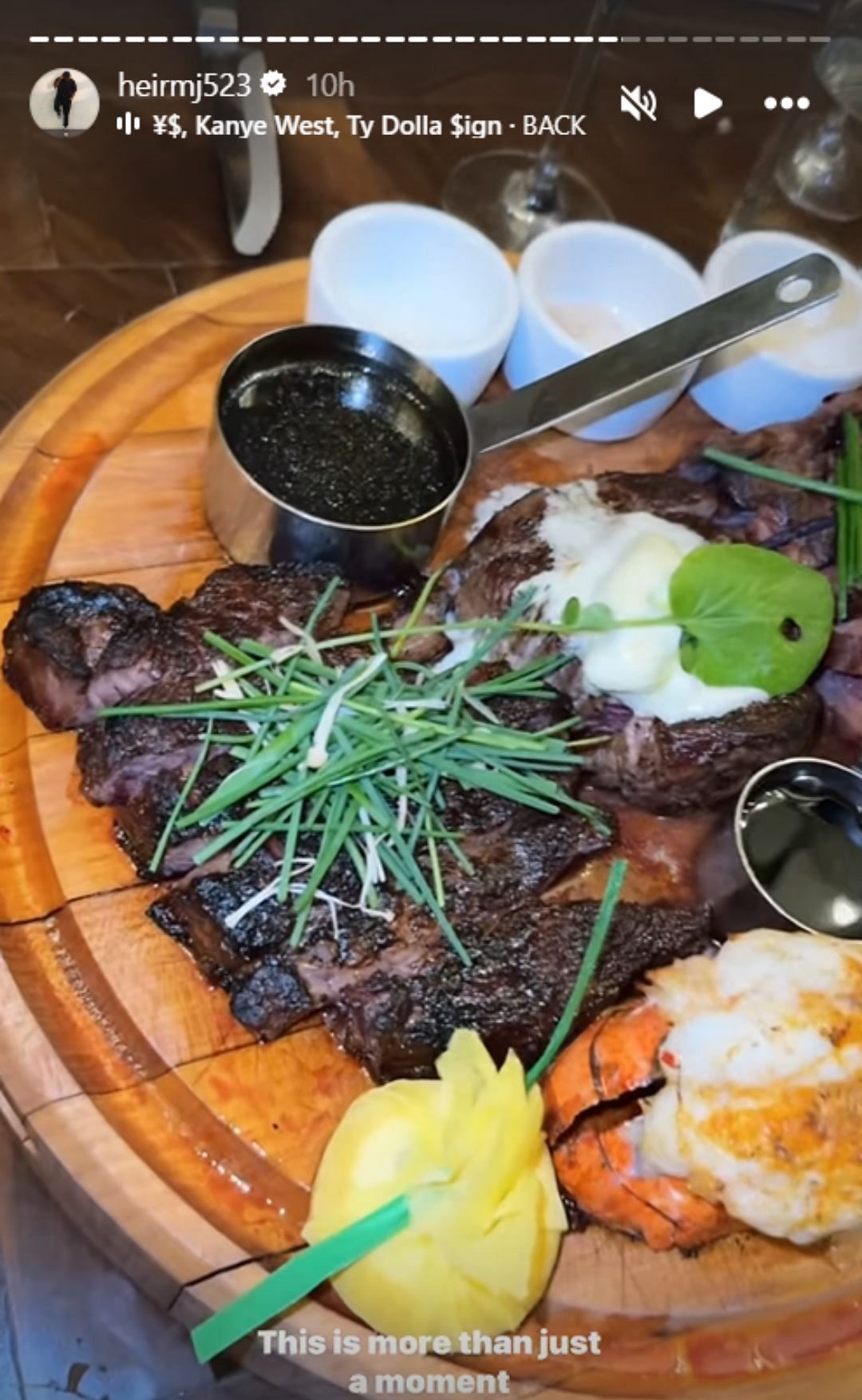 Marcus Jordan shared snippets of his father Michael Jordan's Steak House during his visit to the Chicago restaurant on Monday. Marcus shared a series of snaps on Instagram that featured pictures of the interiors of the restaurant and the food served.