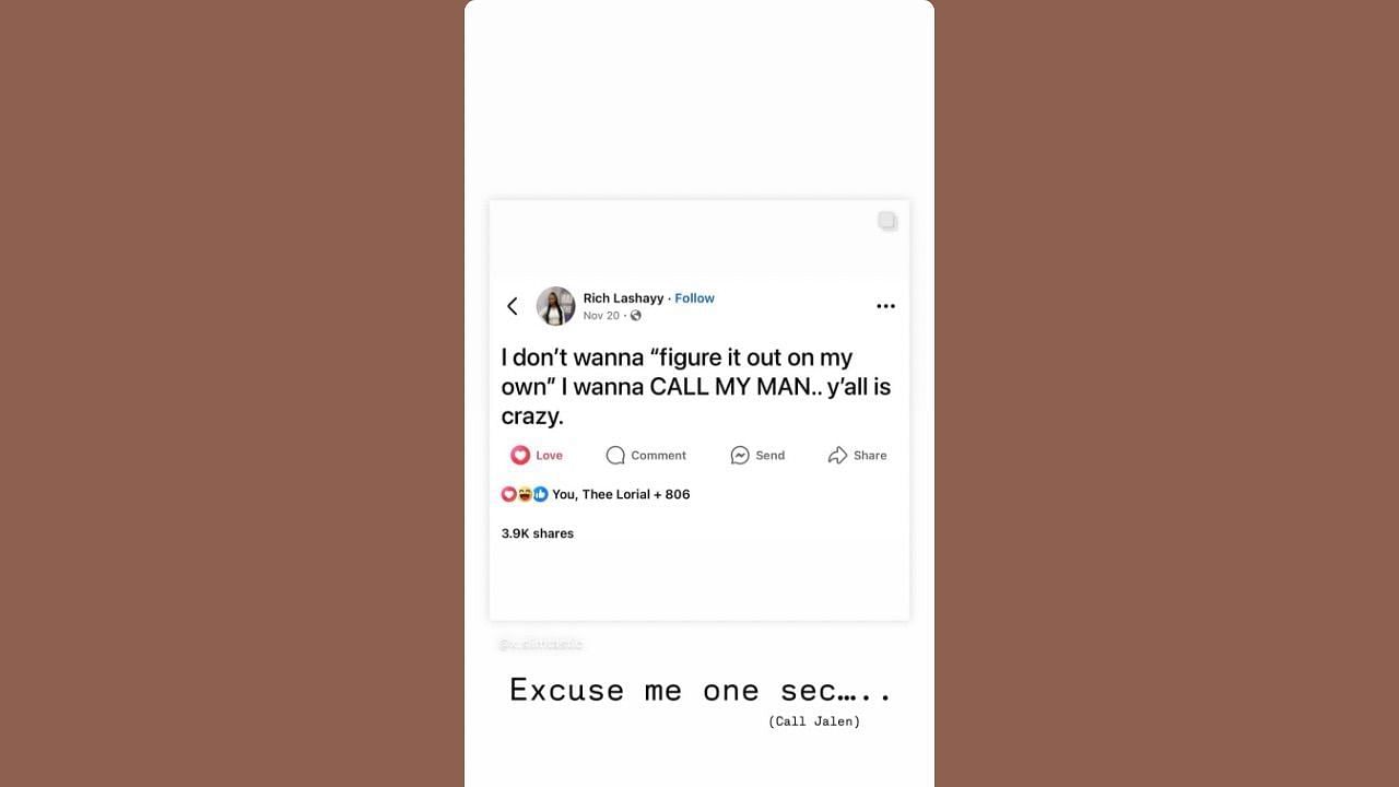 "Excuse me one sec..... (call Jalen)