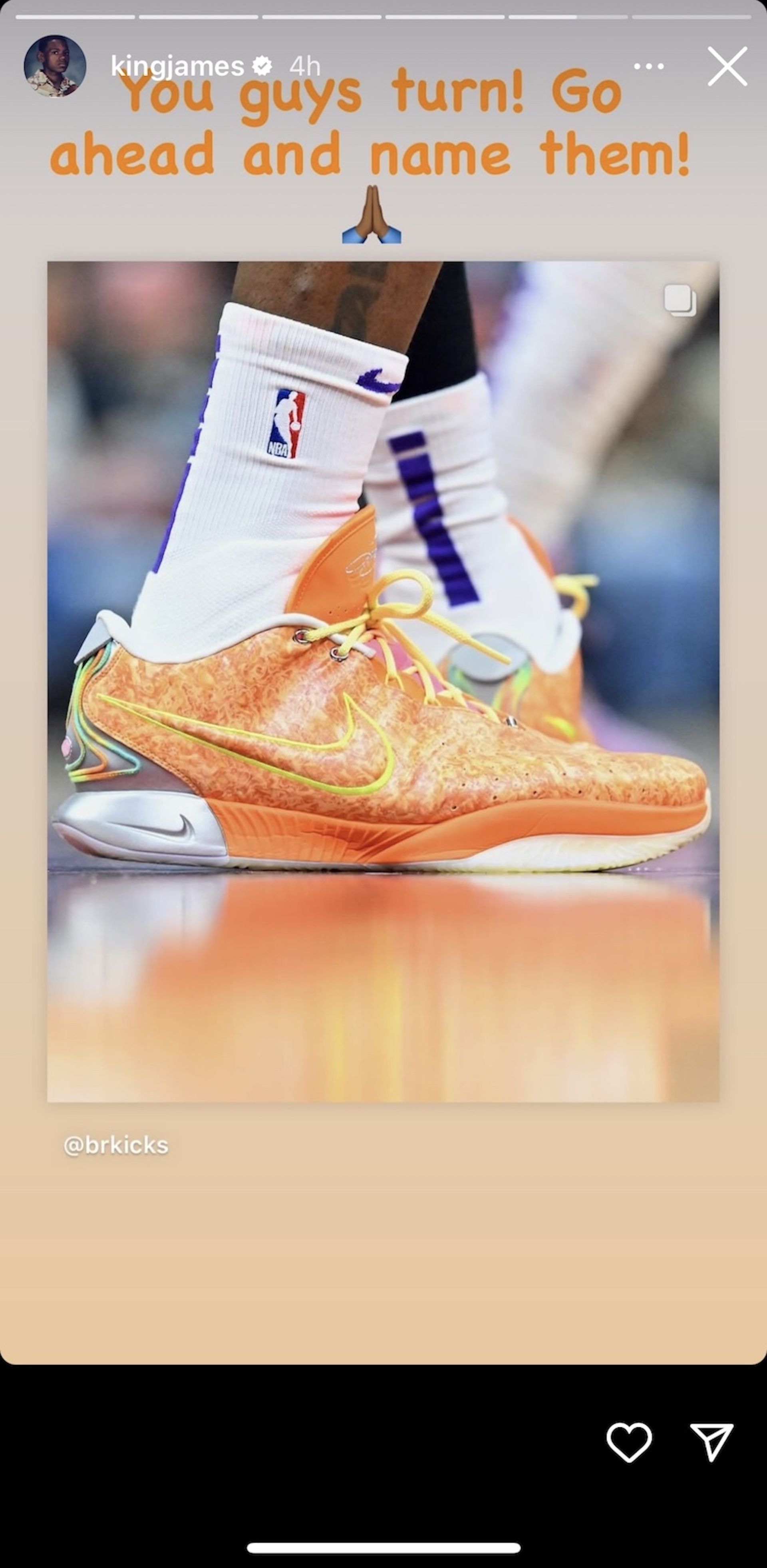 James shared a post about his new orange shoes. He completed the post on his Instagram story with a caption seeking the help of his fans.