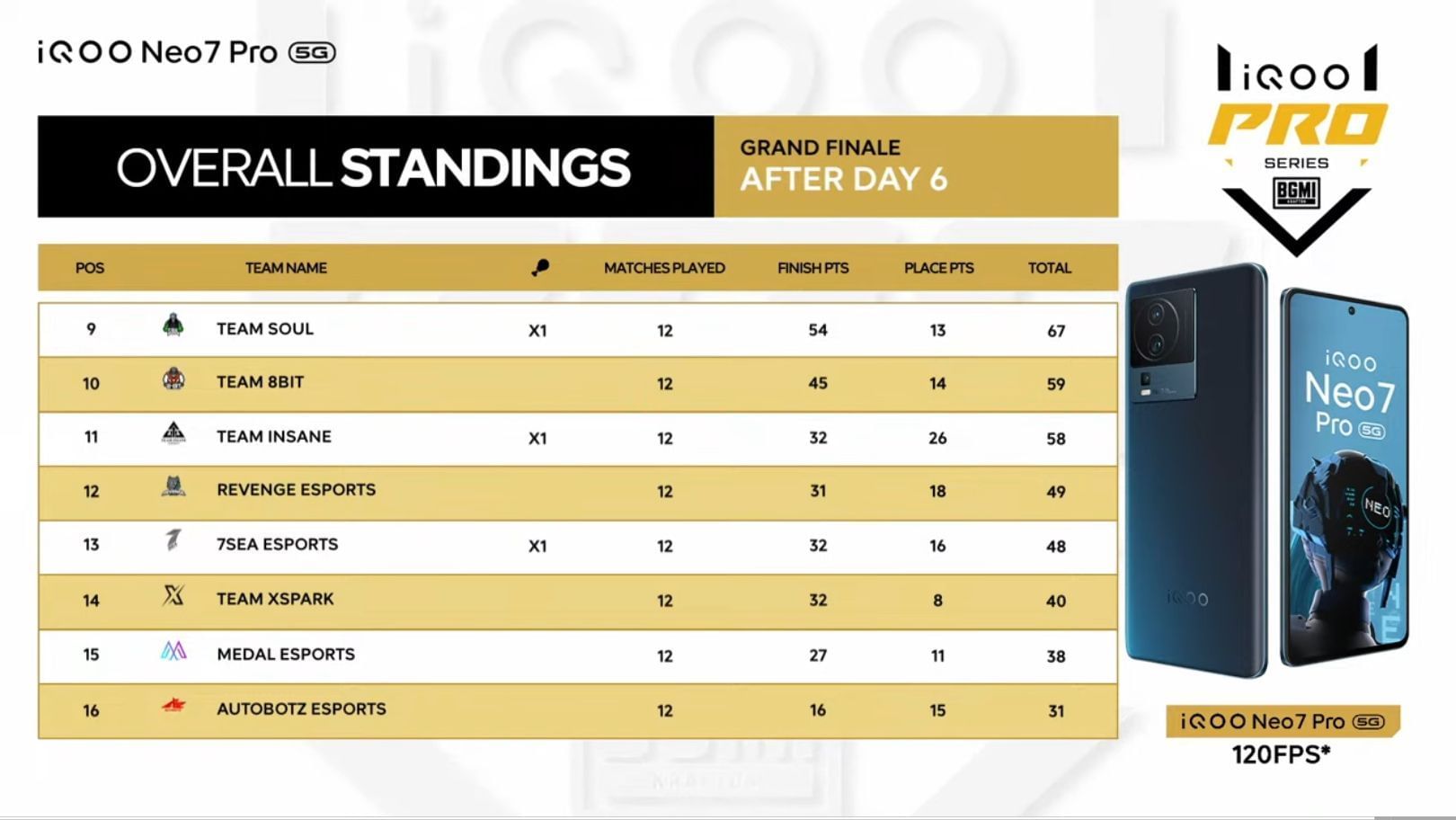 iQOO BGMI Pro Series Finale Day 2 results