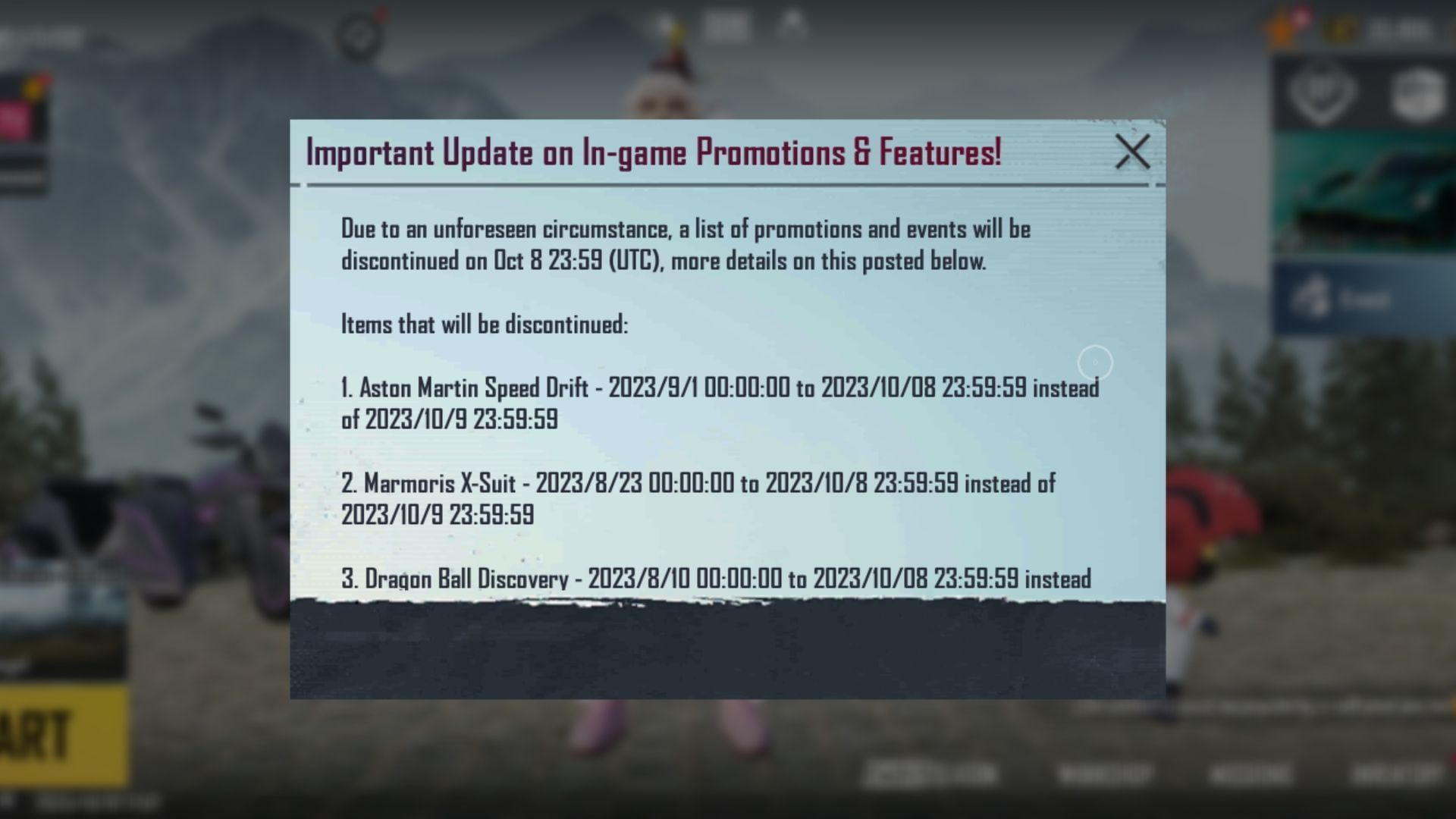 While Krafton has decided to discontinue various in-game events and promotions, they haven't disclosed any particular reason for the same. This happens to be the first time that any such notice has arrived from the developer before the removal of any event or promotion.