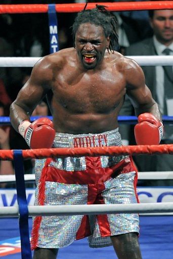 Audley Harrison wins the European Heavyweight Championship title at Alexandra Palace in North London, April 9, 2010. The Olympic gold medallist is retiring from professional boxing following his latest loss.