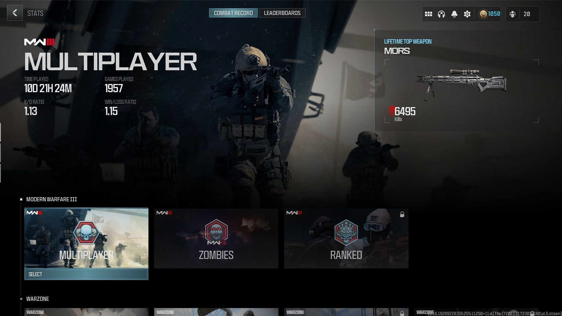 That's it. This new page will show you your KD in Modern Warfare 3. But that's not all. It will show you some important stats such as the total time played, total games played, win/loss ratio, and the weapon you got your most kills with. From the page, you can also check your statistics for specific modes such as Multiplayer, Zombies, and Ranked Play.