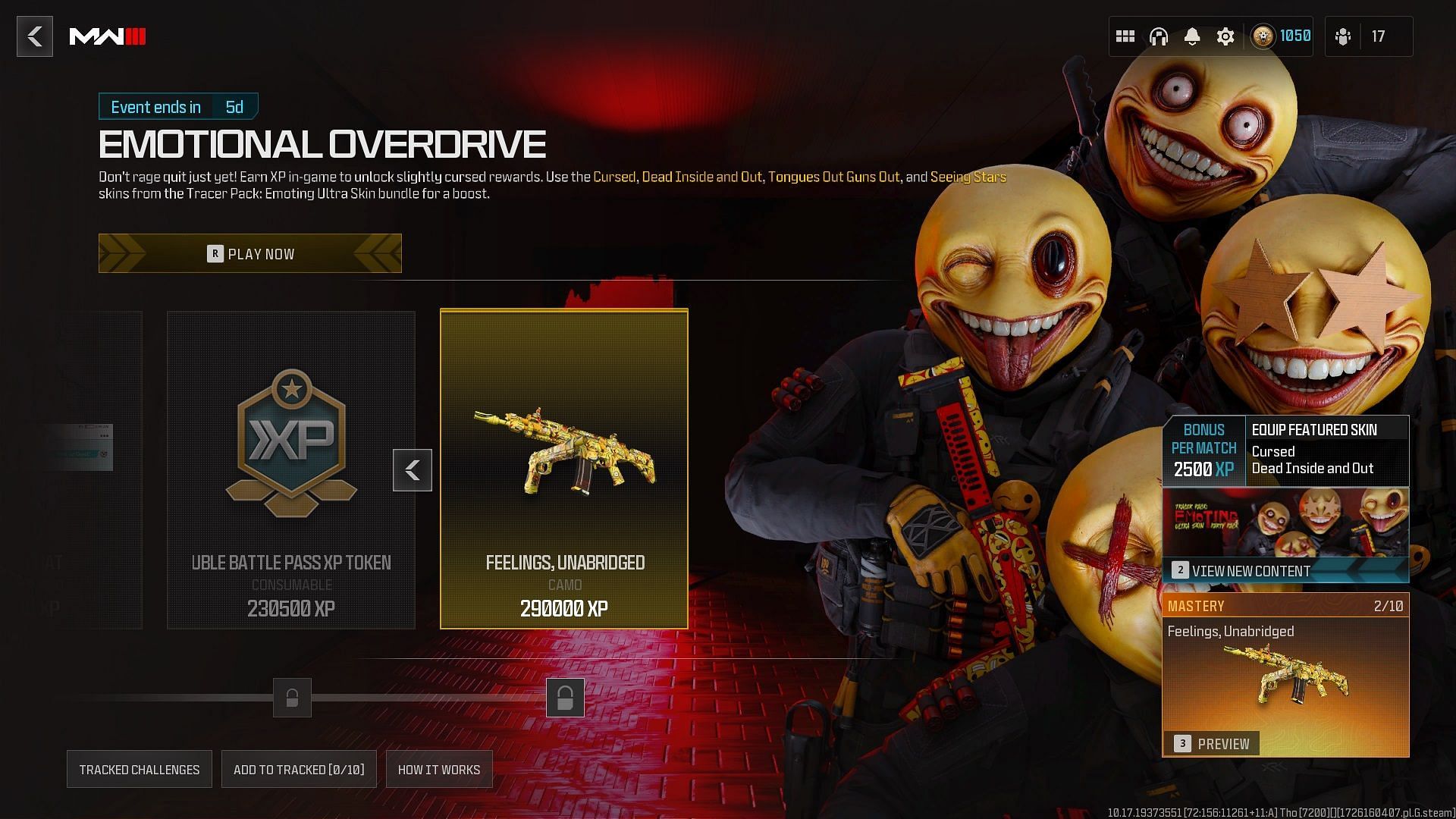 So, all you need to do is play the game, accumulate XP, and once you reach the 290,000 XP milestone, you'll unlock the camo. However, not everyone has the time to grind so much XP, considering that this is a limited-time event. Fortunately, there are a couple of tricks you can use to earn the required XP in the Emotional Overdrive event quickly.
