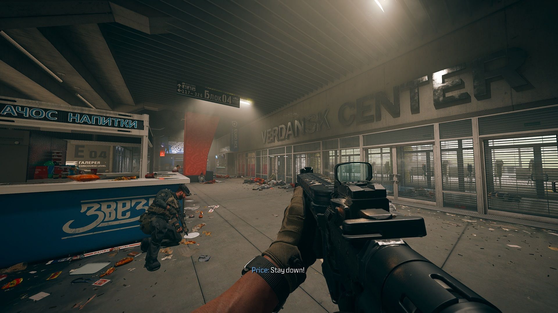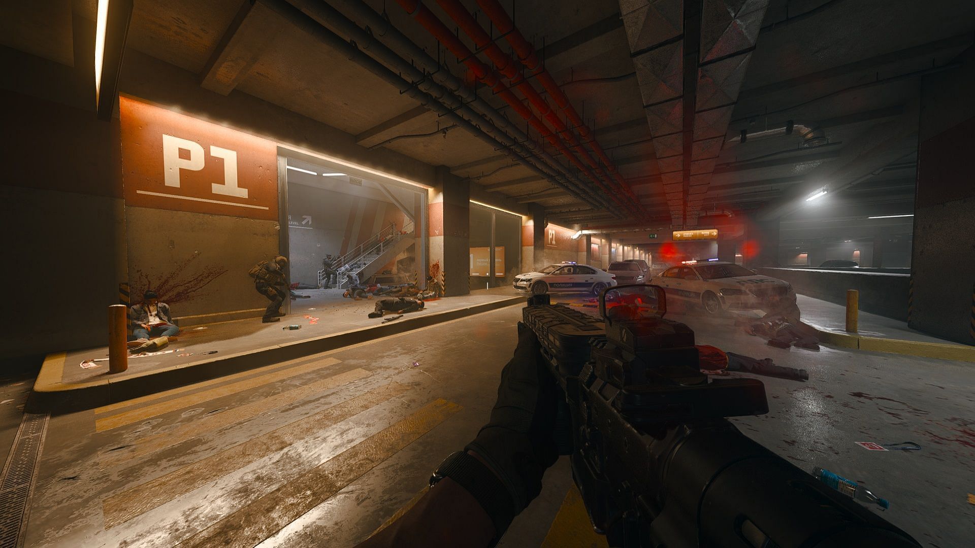 The mission begins with Price, Soap, and Burns in the stadium's underground parking lot. The terrorists are posing as the police, and can be seen slaughtering innocent civilians. Get out of the vehicle and eliminate all the enemies. They will be shooting back so make sure you have sufficient cover.