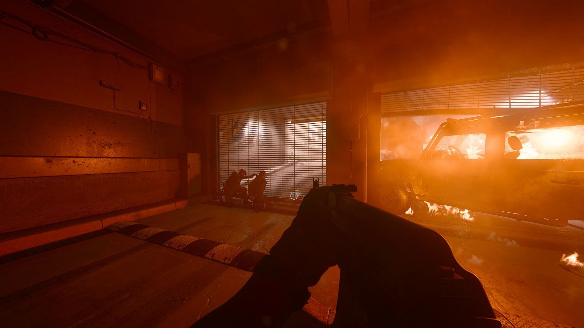 Make your way through the clustered vehicles. Make sure to check your corners properly before proceeding as the terrorists could be hiding anywhere. Moreover, some of them will be armored, and you will need more than a couple of bullets to take them down.