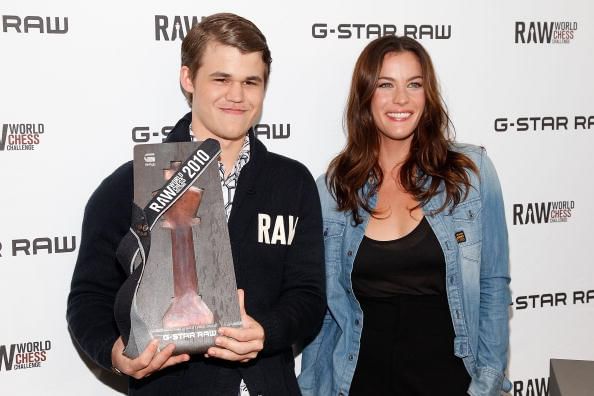 Magnus Carlsen seen here with actress Liv Tyler at the G-Star Raw World Chess Challenge at The Cooper Square Hotel in New York in 2010 (Getty Images)