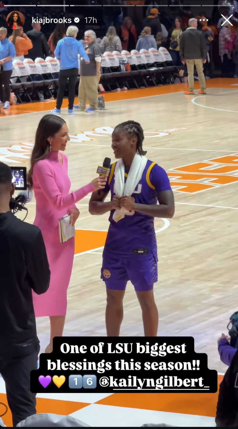 Brooks took to social media on Friday to praise Gilbert and share her gratitude for her contributions to the team. After the game, Brooks posted an image on her Instagram story, where Gilbert was being interviewed with a towel around her neck.