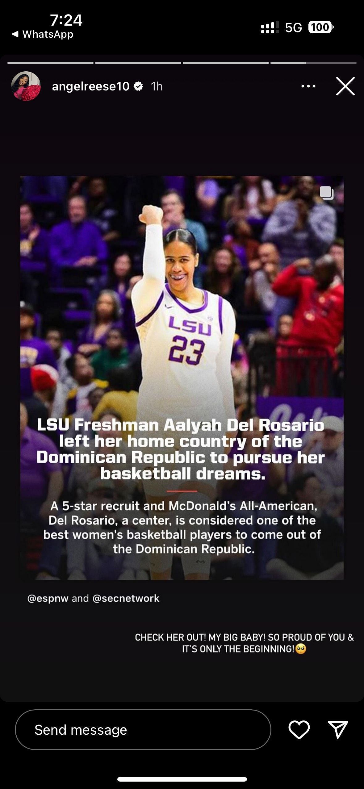In a heartwarming gesture, Angel Reese took to Instagram to share ESPN's coverage of LSU freshman Aalyah Del Rosario's journey to pursue her basketball dreams.