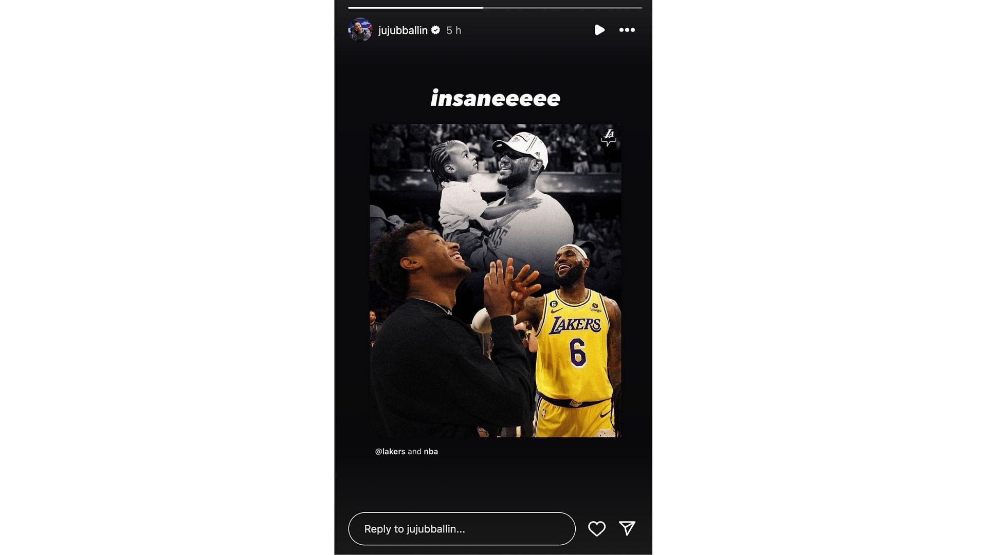 In celebration of the draft pick, the Lakers posted an edit to their Instagram of young and old versions of Bronny and LeBron. USC Trojans star JuJu Watkins reacted by reposting the image to her Instagram story and wrote: