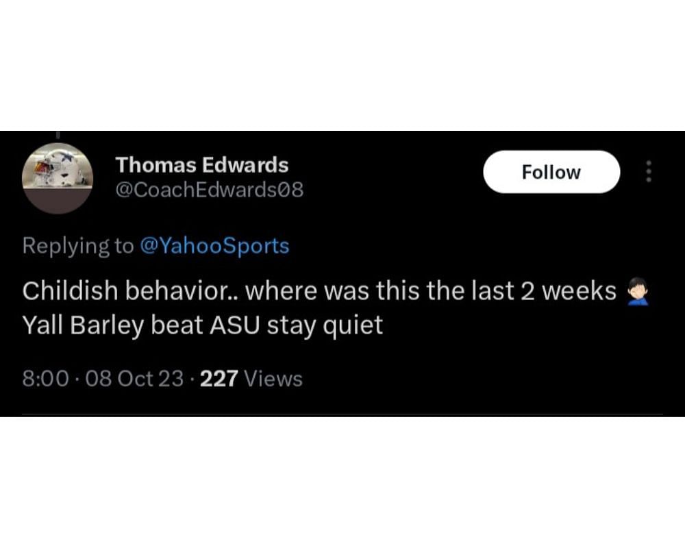 "Childish behavior.. where was this the last two weeks. Y'all barely beat ASU. Stay quiet," one fan wrote.