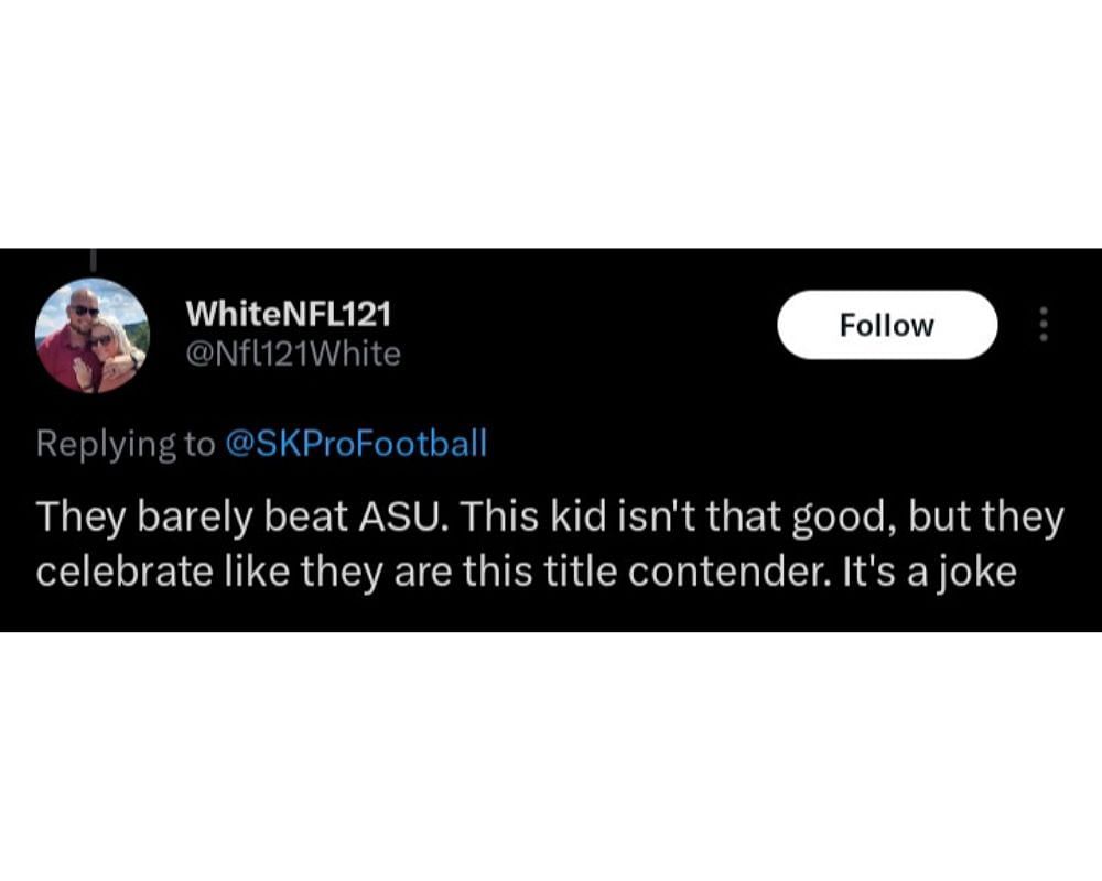 "They barely beat ASU. This kid isn't that good, but they celebrate like they are this title contender. It's a joke," another fan wrote on X.