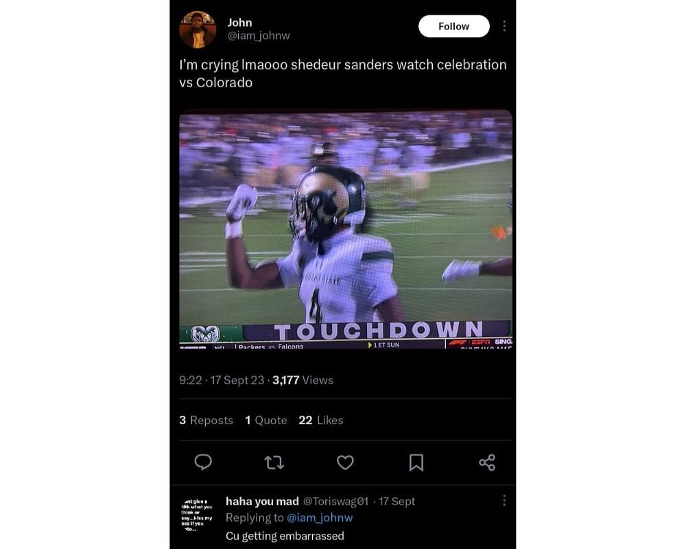Despite the reactions, the on-field contribution of Shedeur Sanders can't be ignored. In the game against the Arizona State Sun Devils, he completed 26 of 42 passes for 239 yards. It was a bit below his average of 356.2 yards per game.