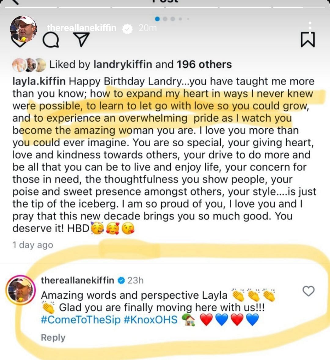 "Amazing words and perspective Layla. Glad you're finally moving here with us!!! #ComeToTheSip #KnoxOHS," Kiffin wrote.