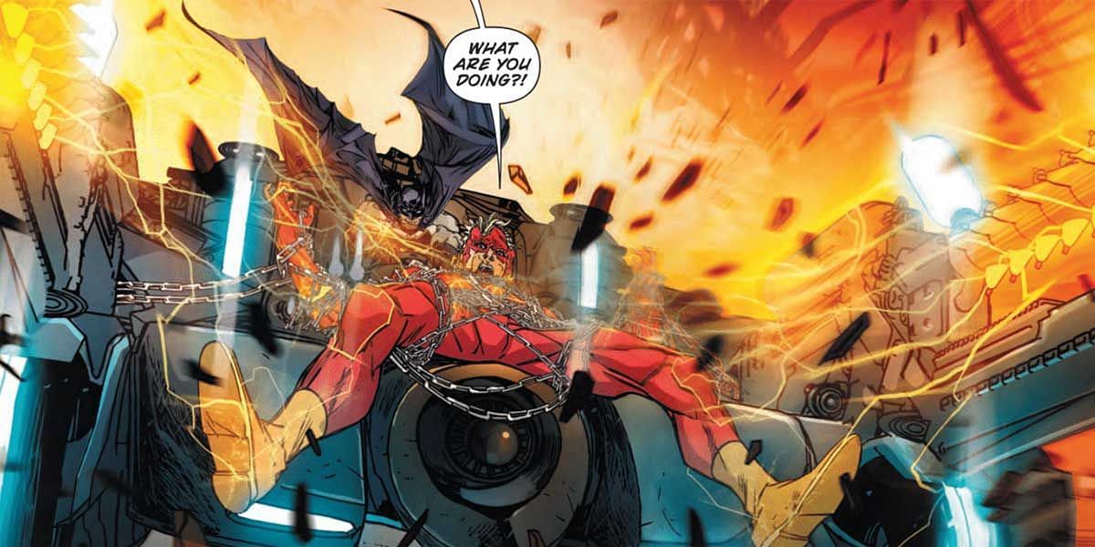 In the storyline, the Caped Crusader does not technically kill Flash. Instead, he takes the Flash's speed force powers to become powerful enough to save Gotham City. The process of transferring the speed force powers from Flash to Batman is traumatic and violent, but it leaves Flash in a weakened and vulnerable state.