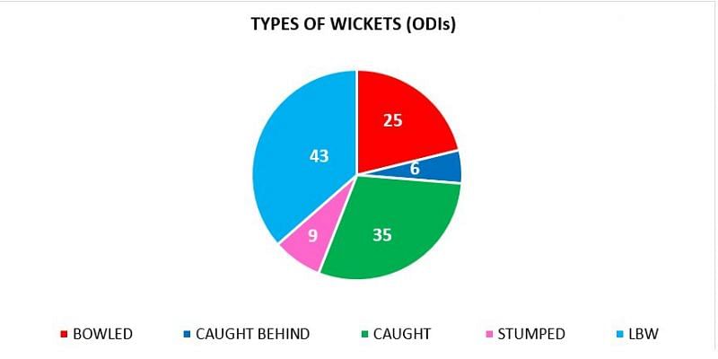 Rashid Khan mainly uses three variations - the leg break, top-spin and the googly. The fact that he bowls googlies more frequently than other leg-spinners, makes him a more consistent wicket-taker. This is confirmed by the observation that most of his wickets have been in the form of LBW and bowled.