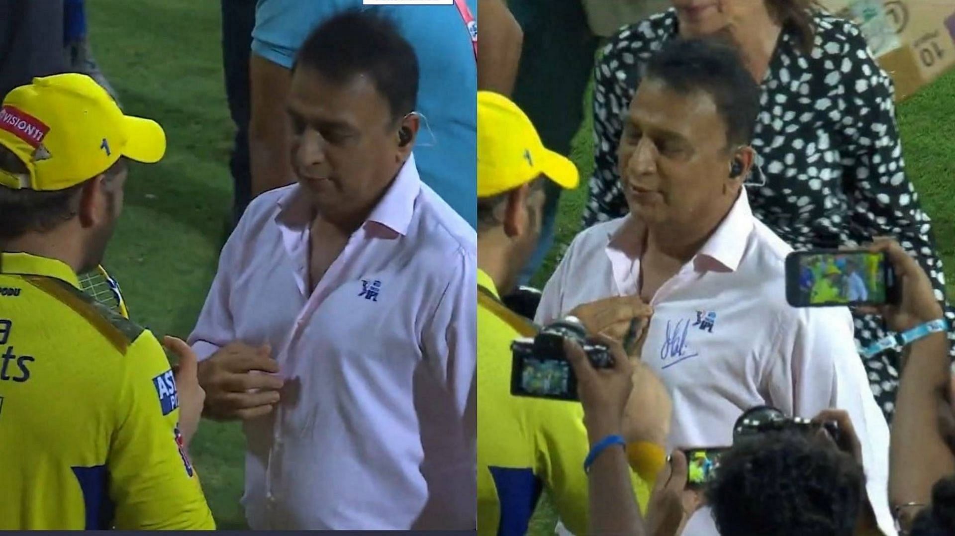 Former Indian great Sunil Gavaskar ran across to MS Dhoni to have the CSK skipper's autograph on his shirt. This came after CSK's final home game of the league stages against the Kolkata Knight Riders (KKR) on May 14.