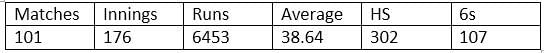 McCullum also tops the list amongst the New Zeland batsmen for most sixes in the ODI format as well with 200 hits over the ropes from 228 matches.
