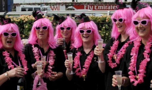 Racegoers celebrate with an early glass of Champagne on Melbourne Cup day at the Flemington Racecourse in Melbourne on November 6, 2012.