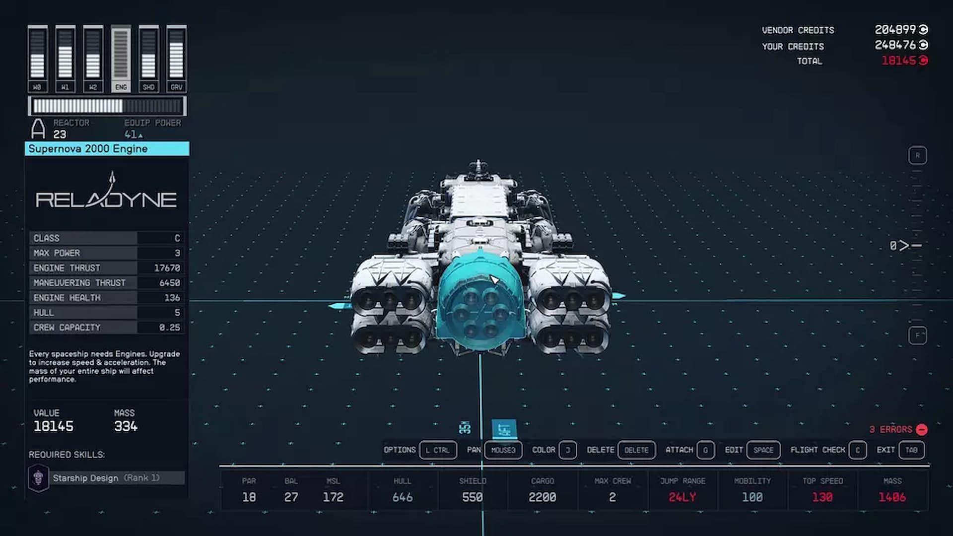 In choosing the best engine for your spacecraft, you have to take into account your ship's weight. You want to find the right balance to make your spaceship work as efficiently as possible.