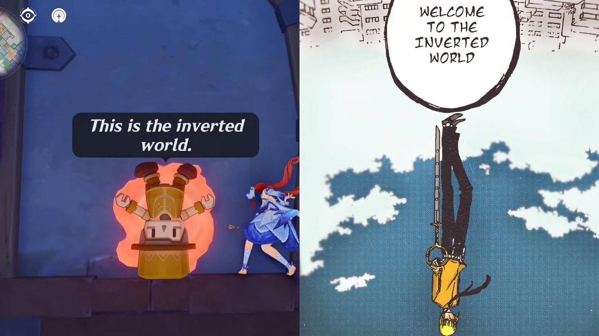In the region of Simulanka, players may come across a toy stuck upside down on a wall. Upon getting closer to it, fans can see the dialogue "This is the Inverted World." which is a clear reference to the iconic manga panel from Bleach where Shinji Hirako says "Welcome to the inverted world!'.