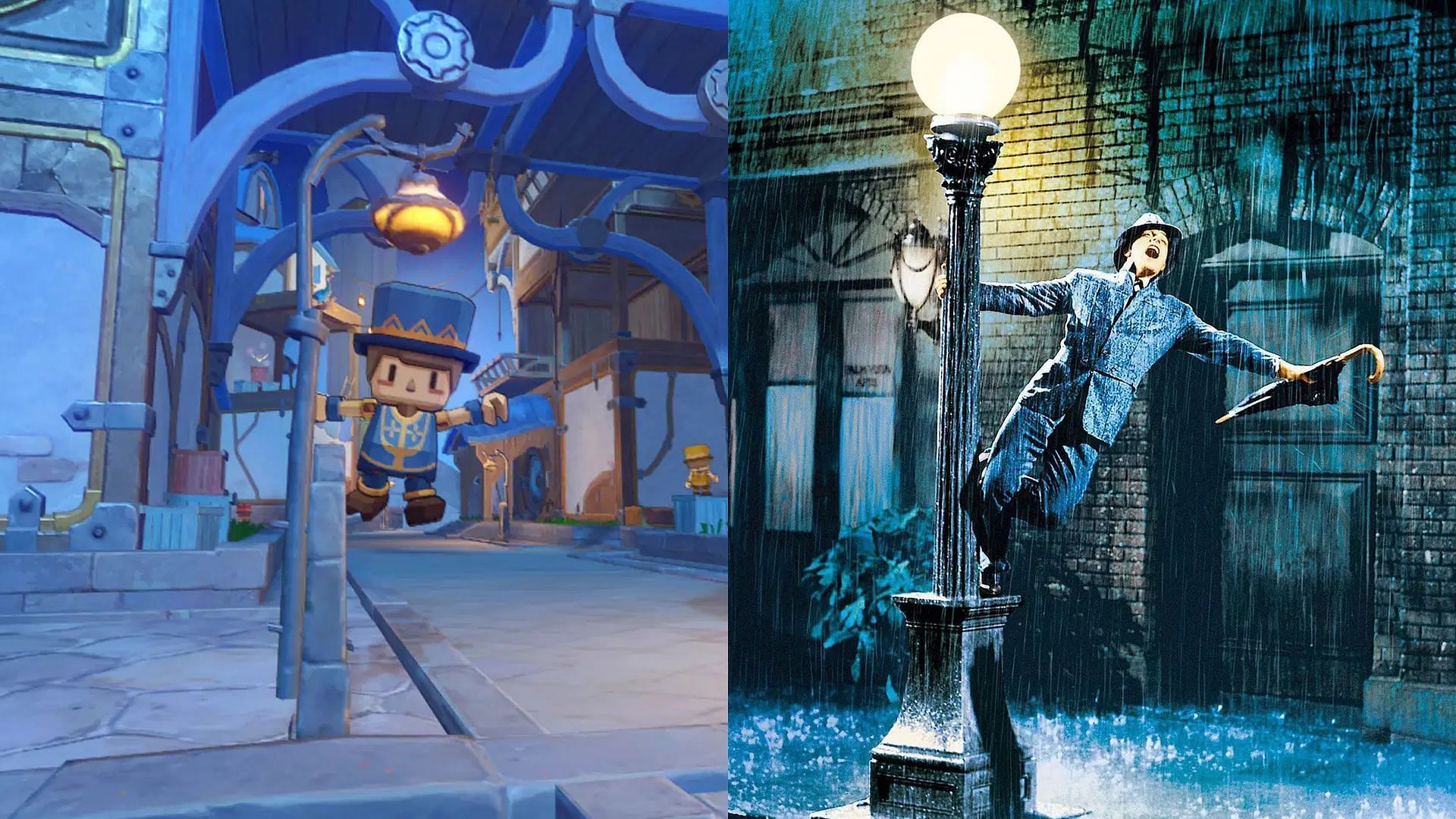 Singin' in the Rain is an iconic classic from 1952 featuring the talents of Gene Kelly. While exploring Simulanka in Genshin Impact, Travelers may come across a blue toy recreating the famous pose from the movie on a night lamp.