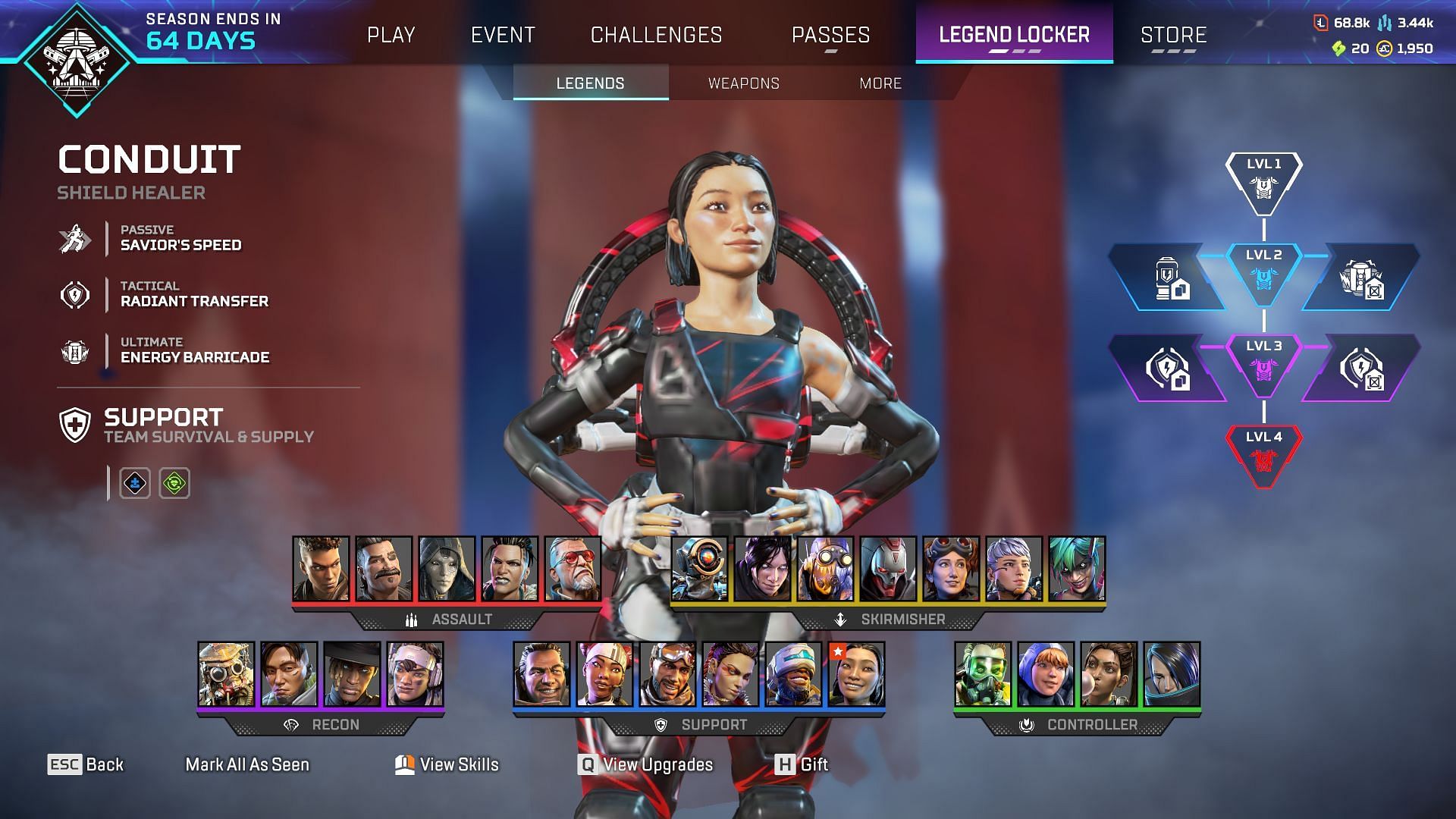 Conduit's tactical ability, Radiant Transfer, provides her the ability to fill up her teammate's shields whenever they deplete. When using it on her allies, Radiant Transfer fills up her allies' shields to their maximum limit. Meanwhile, this also regenerates her own shields up to 65 HP.