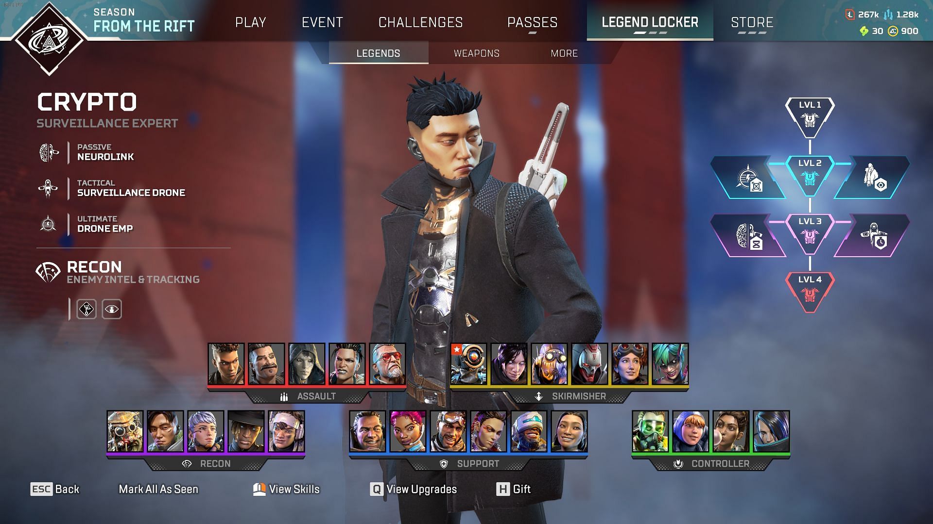 Crypto is a Recon legend and can provide positional information with his drone. The drone can be used to find the exact location of enemies which will allow Ballistic to activate his ultimate just before team fights. Moreover, Crypto's ultimate can eat away a chunk of the enemy shields and slow their movement speed — making them easy targets.