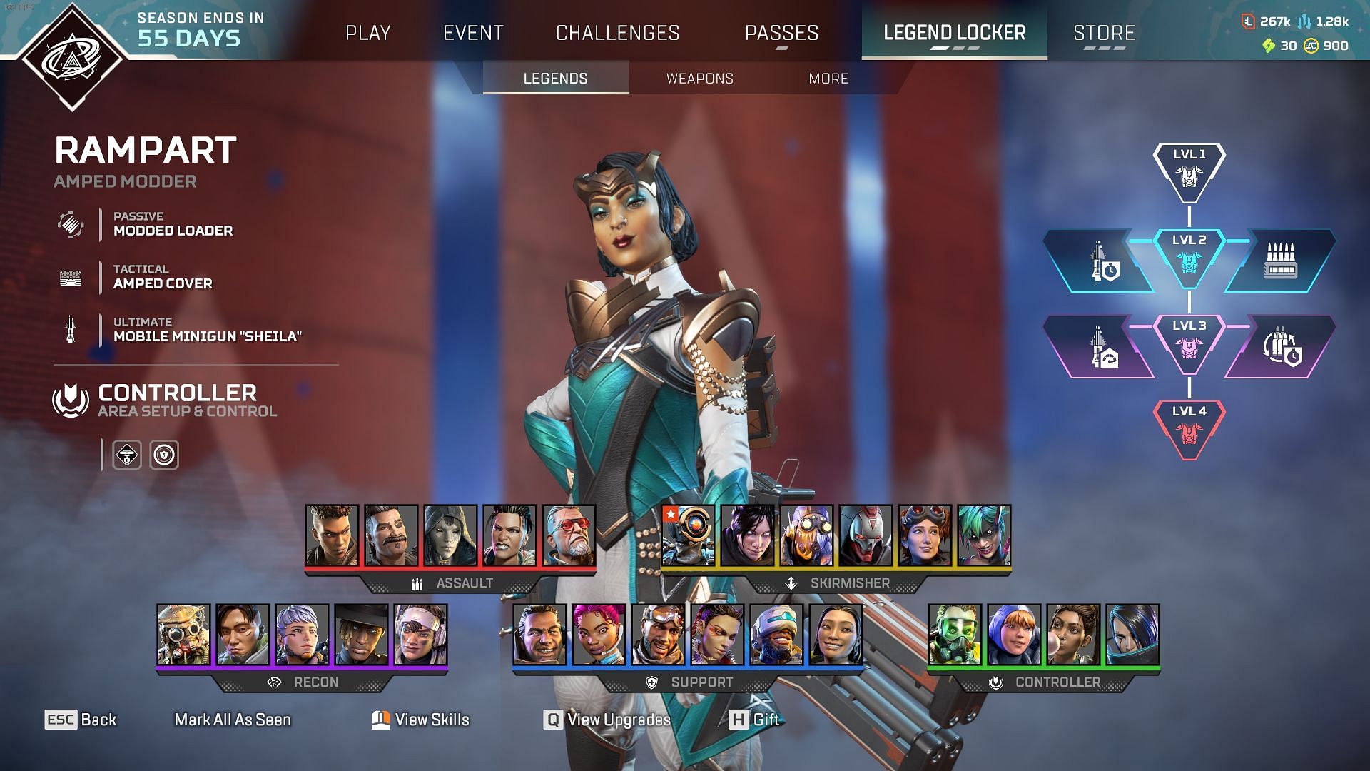 Rampart is a Controller character in Apex Legends and has a passive that increases magazine size when using Light Machine Guns. The LMGs are heavy weapons and generally have a longer reload time. Ballistic's ultimate can be used to reduce the reload time and help Rampart be more active during fights while pumping out massive damage numbers.