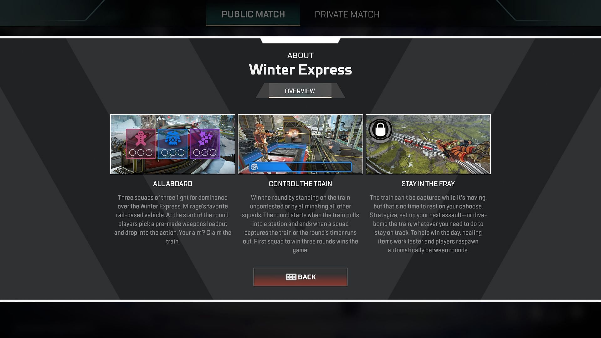 Winter Express in Apex Legends is another event you shouldn’t miss. The mode becomes available at the end of every year as it's a holiday/Christmas event. The gameplay is fairly simple and a lot of fun when queuing with friends.