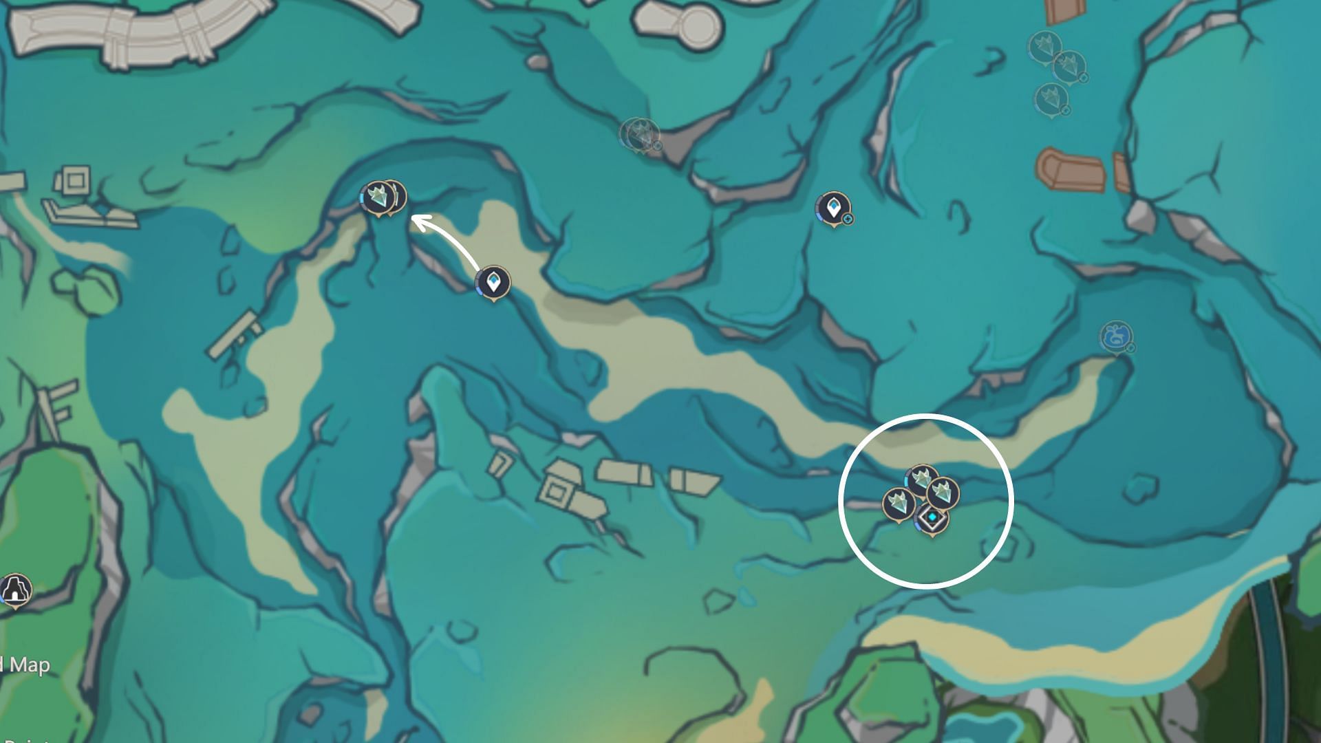 The last Crystal Core location is at the edge of the Beryl region in Fontaine. Teleport to the southwest waypoint and head down. At first, you will encounter a location where players can harvest two Crystalflies. Keep heading south to find another place where you will come across four more Crystalflies.