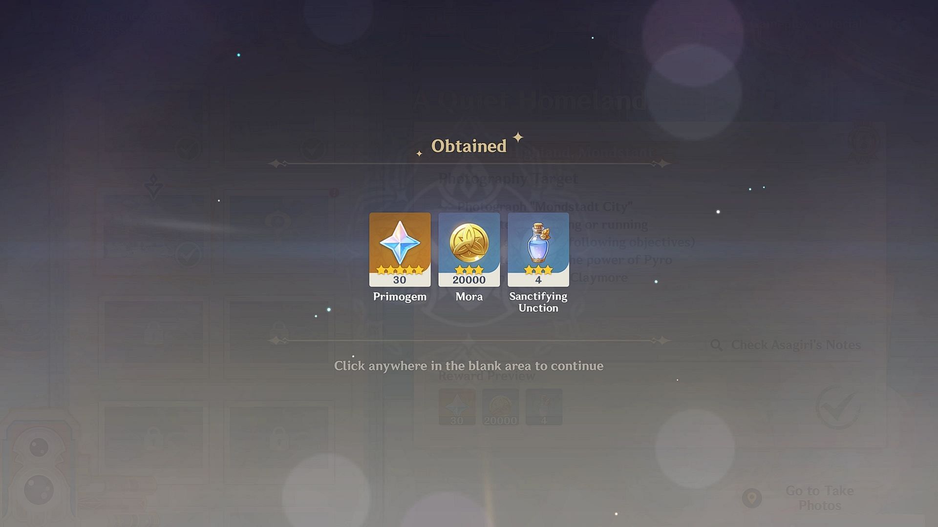 Completing the objective will give you 30 Primogem rewards in Genshin Impact. This article provides a simple Outside the Canvas, Inside the Lens: Dew-Kissed Chapter - A Quiet Homeland event guide.