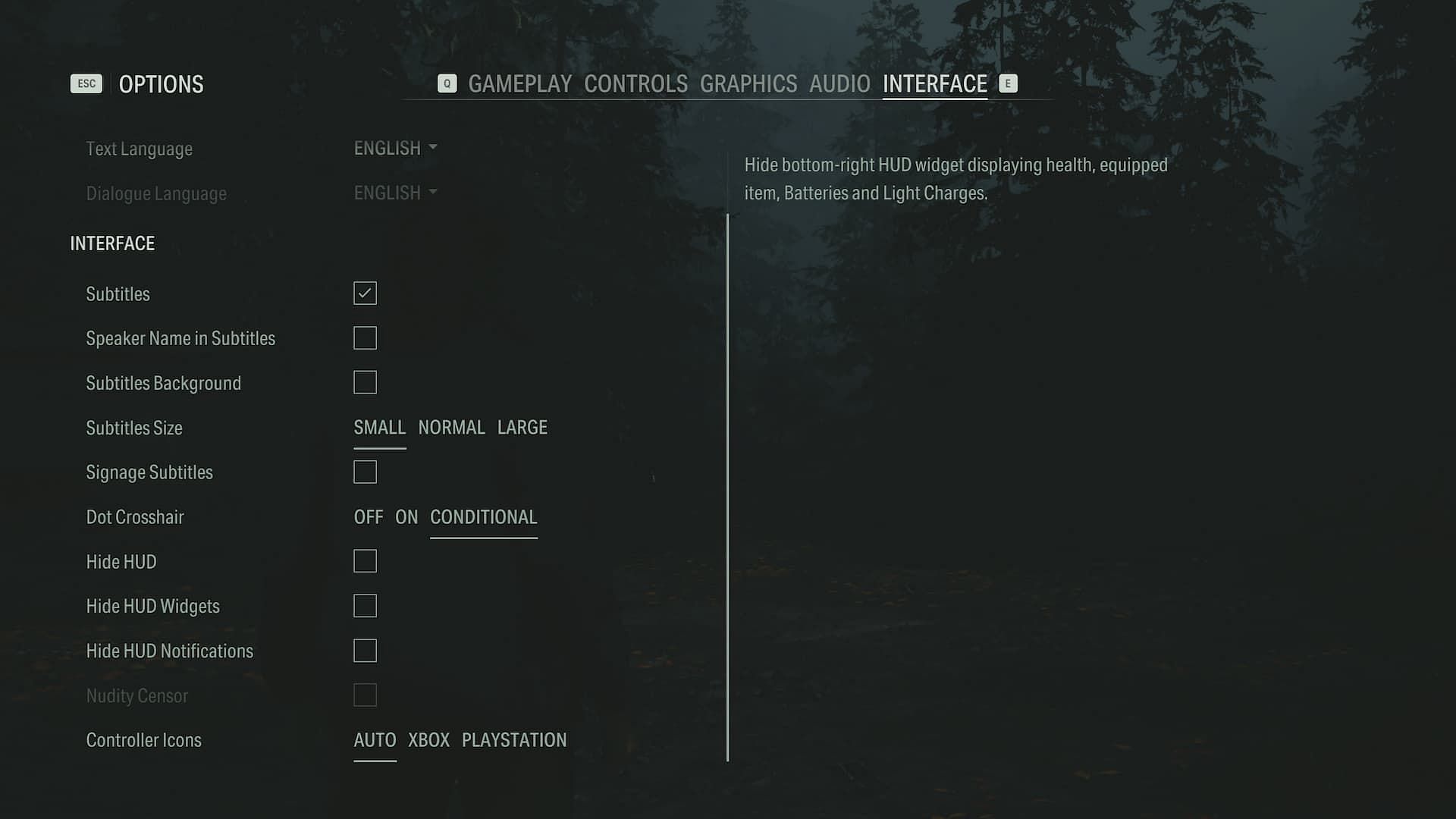 - Subtitle options: A slew of options are included for subtitle customization. Options include speaker names, subtitle backgrounds, and titles for in-game items. Alternatively, subtitles can be turned off entirely if desired.