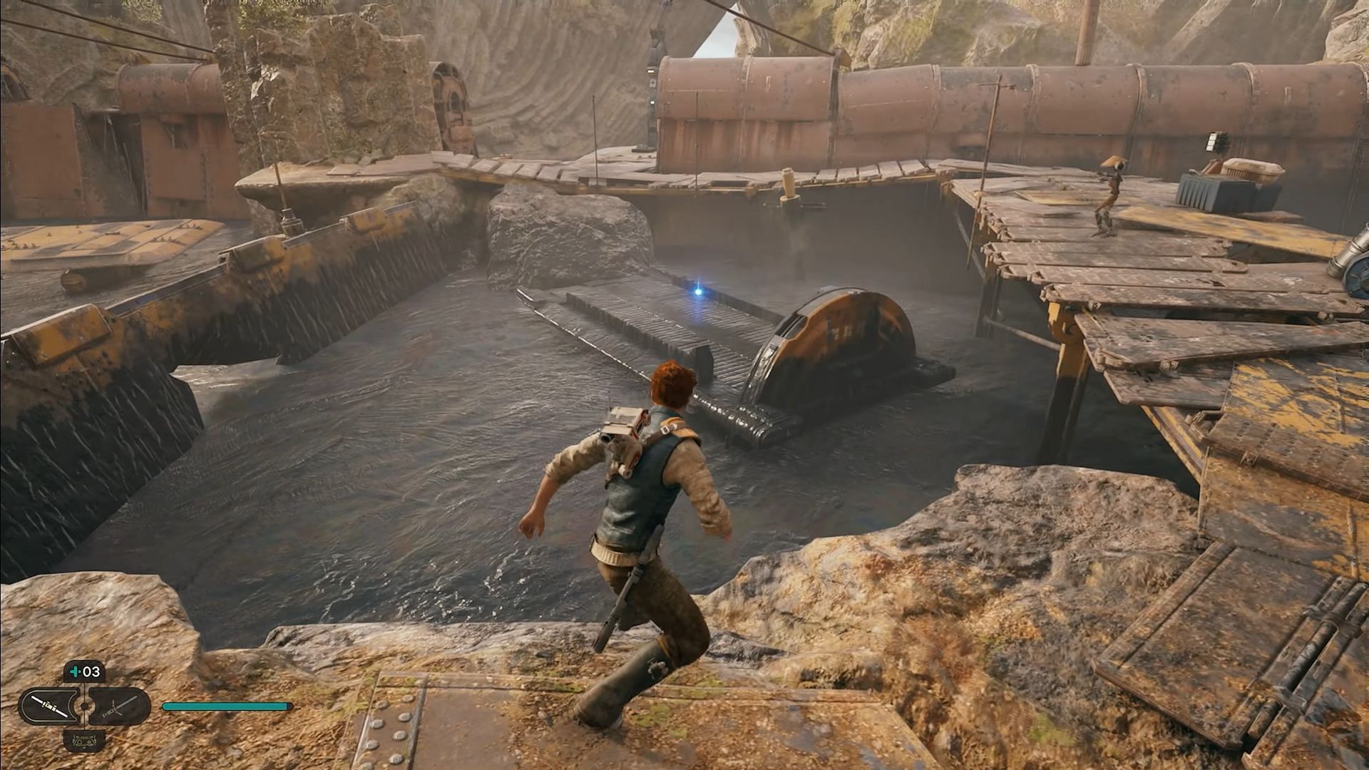 There is just one Force Essence that you will find in the Gorge Crash Site in Star Wars Jedi Survivor. For this, you must pull the Pit Droid Ship out of the Tar Pit located in Derelict Dam Region. You must first unlock the Force Lift Ability, which you can do as you progress through the main story. This will reward you with a Skill Point.