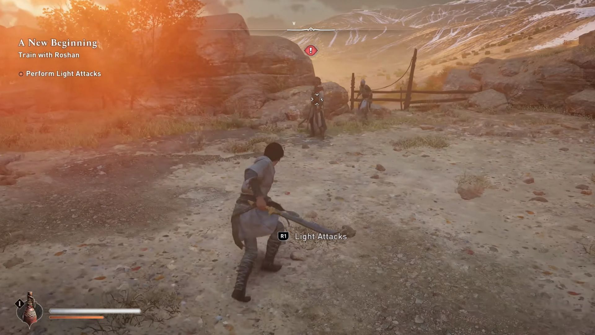 At the end of the mission, Roshan will teach Basim how to use the weapons and engage in battle. The first few moves will be simple attacks, but things will get more complicated as the fight progresses.