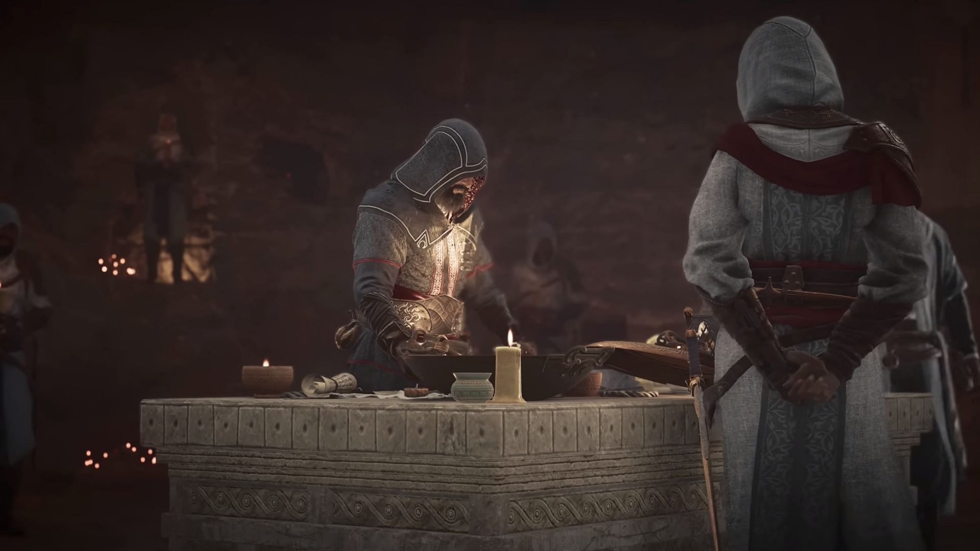 You will approach an altar where the other assassins are holding candles. Go to the center of the altar and pick up a red-hot knife. With this weapon, you will have to cut off the ring finger of your right hand. Although painful for Basim, this will be one of the distinguishing signs of his identity among the Hidden Ones. After completing the first part of the ritual, Basim must continue to prove his worth.
