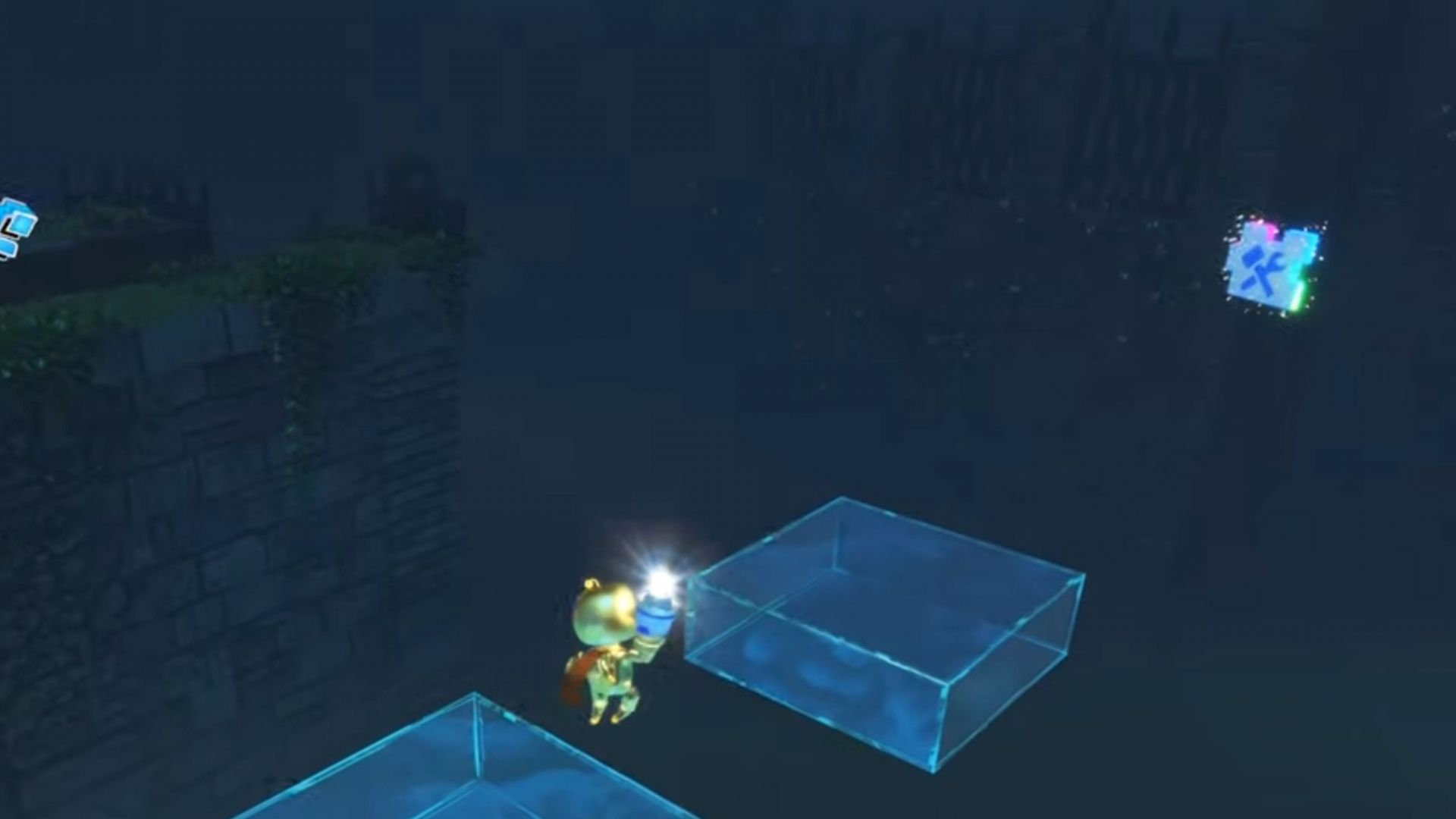 Head towards your left and then climb up the platform to a new area with a sleeping statue. Attack the statue with the light bulb to unravel the second puzzle piece of Astro Bot Light Bulb Limbo.
