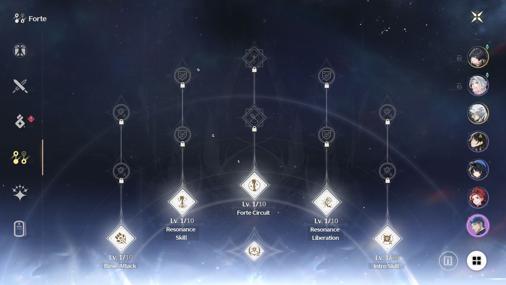 - Resonance Skill > Forte Circuit > Resonance Liberation > Basic ATK > Intro Skill